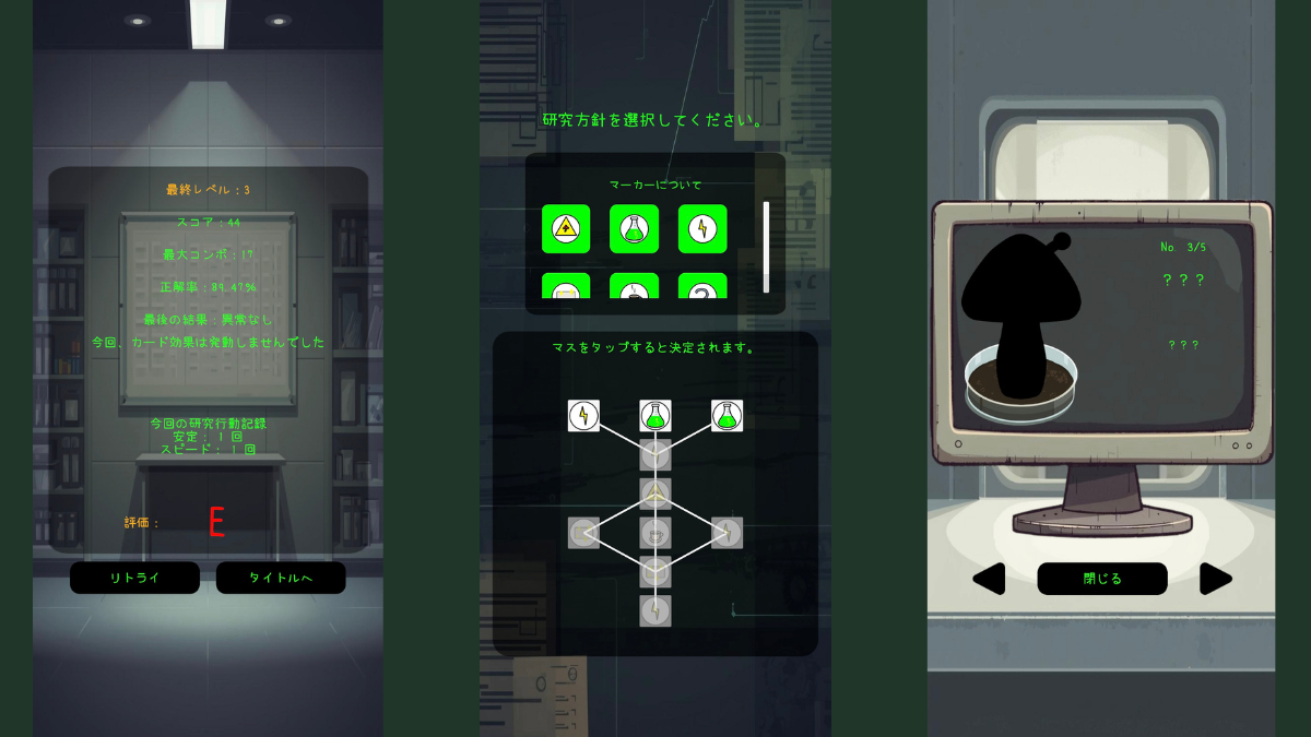 研究方針を選ぶことで、検査の進行や難度が変わる。
